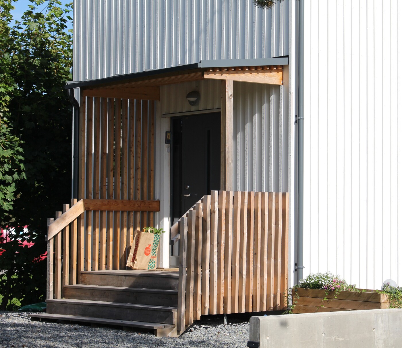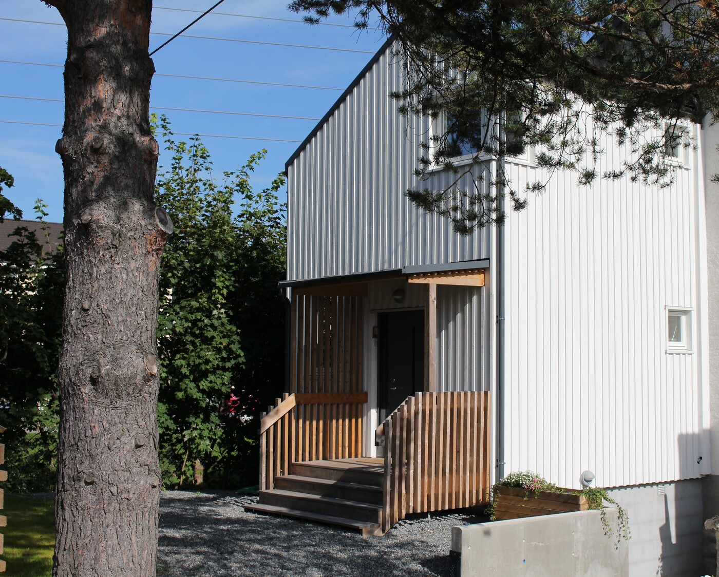 Tilbygg. Nytt inngangsparti og bad til bolig i 2.etasje.